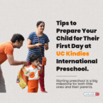Tips to Prepare Your Child for Their First Day at UC Kindies International Preschool. Bye-Bye Tears, Hello Cheers! Starting preschool is a big milestone for both little ones and their parents. It marks the beginning of a new journey full of laughter, learning, friendships, and growth. At UC Kindies International Preschool, we understand how special and emotional – this transition can be. Here are 10 easy and effective tips to help your child feel confident, safe, and excited about their first day of school. 1. Talk About School Positively Speak about school as an exciting adventure! Use phrases like: “You’ll get to make new friends!” or “There will be toys, games, stories, and fun.” Children mirror your emotions—so if you’re excited, they will be too. 2. Read School-Themed Books Together Books like “Llama Llama Misses Mama” or “The Kissing Hand” can help children relate to characters going through the same first-day feelings. 3. Establish a Routine Early Begin the school routine a week in advance—wake up time, breakfast, getting dressed. This helps reduce anxiety on the actual day. 4. Let Them Choose Their School Bag or Bottle Giving your child a choice, even in small things like their backpack or lunchbox, builds excitement and a sense of ownership. 5. Practice Short Separations Start with short periods apart to help your child learn that when you leave—you always come back. This makes school-time transitions smoother. 6. Visit the School (if possible) A quick school tour or meet-and-greet with teachers helps children feel familiar and safe in their new environment. UC Kindies often organizes orientation days—don’t miss them! 7. Use Songs or Rhymes About School Preschoolers love songs! Use rhymes like: “This is the way we go to school…” to make it fun and memorable. 8. Listen to Their Feelings Let your child express their fears or excitement. Respond calmly and assure them that it’s okay to feel a little nervous. 9. Label Everything Label bags, bottles, and lunchboxes with their name and a small sticker/icon. It gives them a sense of familiarity and helps teachers, too! 10. Keep Goodbyes Short and Sweet Don’t linger during drop-off. A warm hug, a big smile, and a confident goodbye can go a long way in building trust. Final Thought The first day of school is just the beginning of a beautiful journey. At UC Kindies, we ensure every child feels welcomed, loved, and encouraged to learn through fun. With your support at home and our nurturing environment at school, your little one is all set to shine!Here’s to new beginnings, joyful mornings, and confident little explorers! at UC Kindies International Preschool.